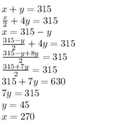 В двух музеях всего 375 экспонатов. Первый передал половину своих экспонатов второму музею на время выставки. Тогда во втором стало в 4 раза больше экспонатов, чем в первом. Сколько экспонатов было в каждом из них?