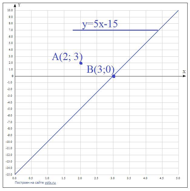 По другому график функции можно записать в виде: y=5x-15.