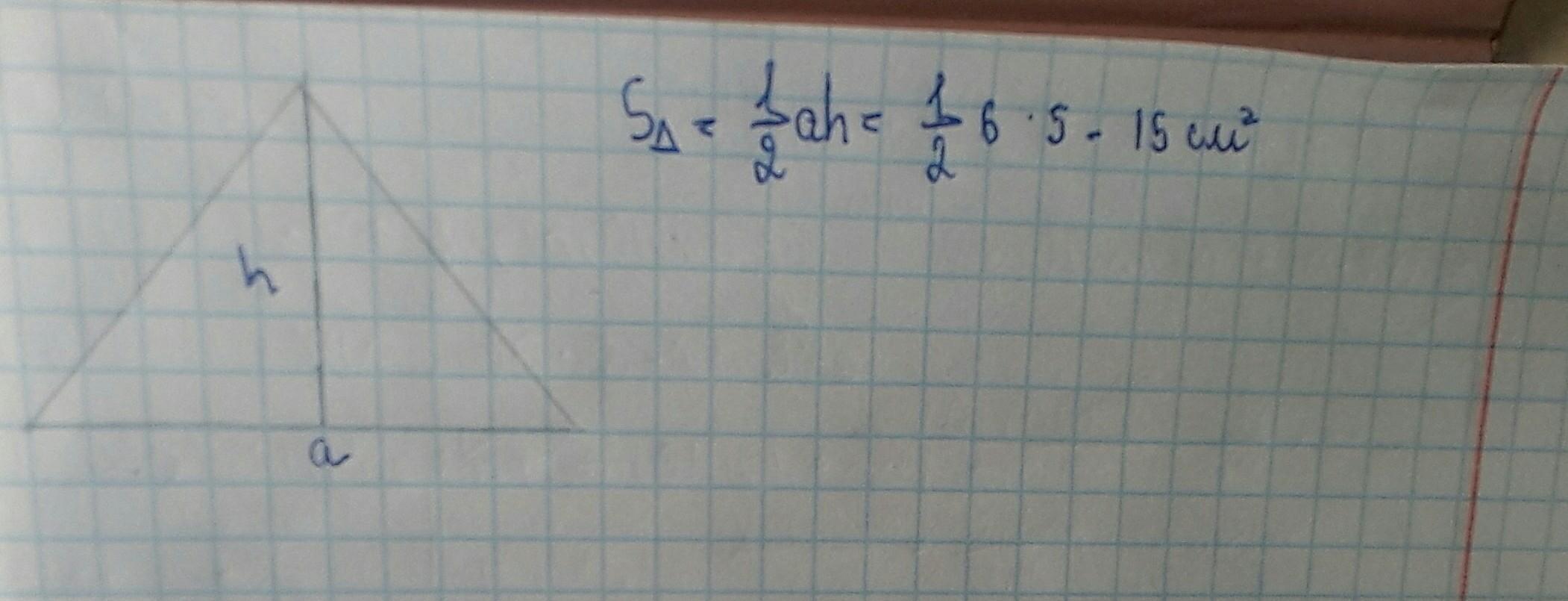 Побудуйте трикутник, одна зі сторін дорівнює 6см, а висота, проведена до цієї сторони 5см обчислити площу цього трикутника