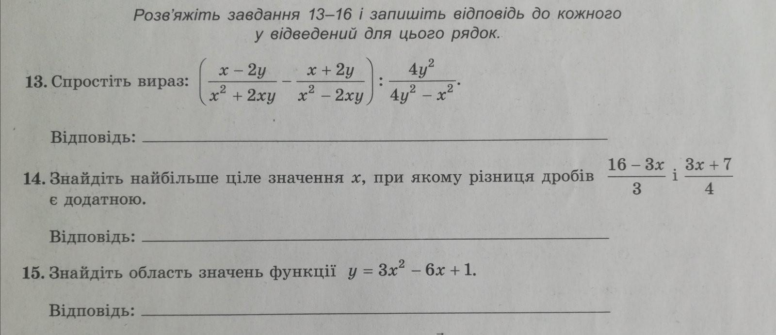 14. Определите наибольшее целое значение х, при котором разность дробей и