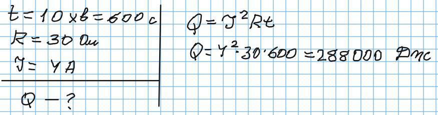 Яку роботу виконає електричний струм за 10 хв в електропечі, увімкнутійй у мережу, якщо опір нагрівального елемента печі становить 30 Ом, а сила струму в ньому дорівнює 4А