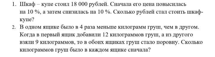 2). х - первый ящик, 4х - второй ящик. х+12 = 4х-9, 3х=21 кг. х = 7 кг - первый ящик, 4*7= 28 кг - второй ящик. Береги баллы Сеня.