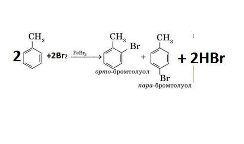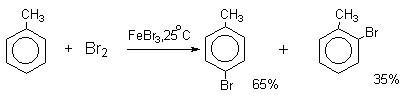 Заместитель бром 1 рода, поэтому образуется орто- и пара- бромтолуол. У вас пропущен орто-бромтолуол