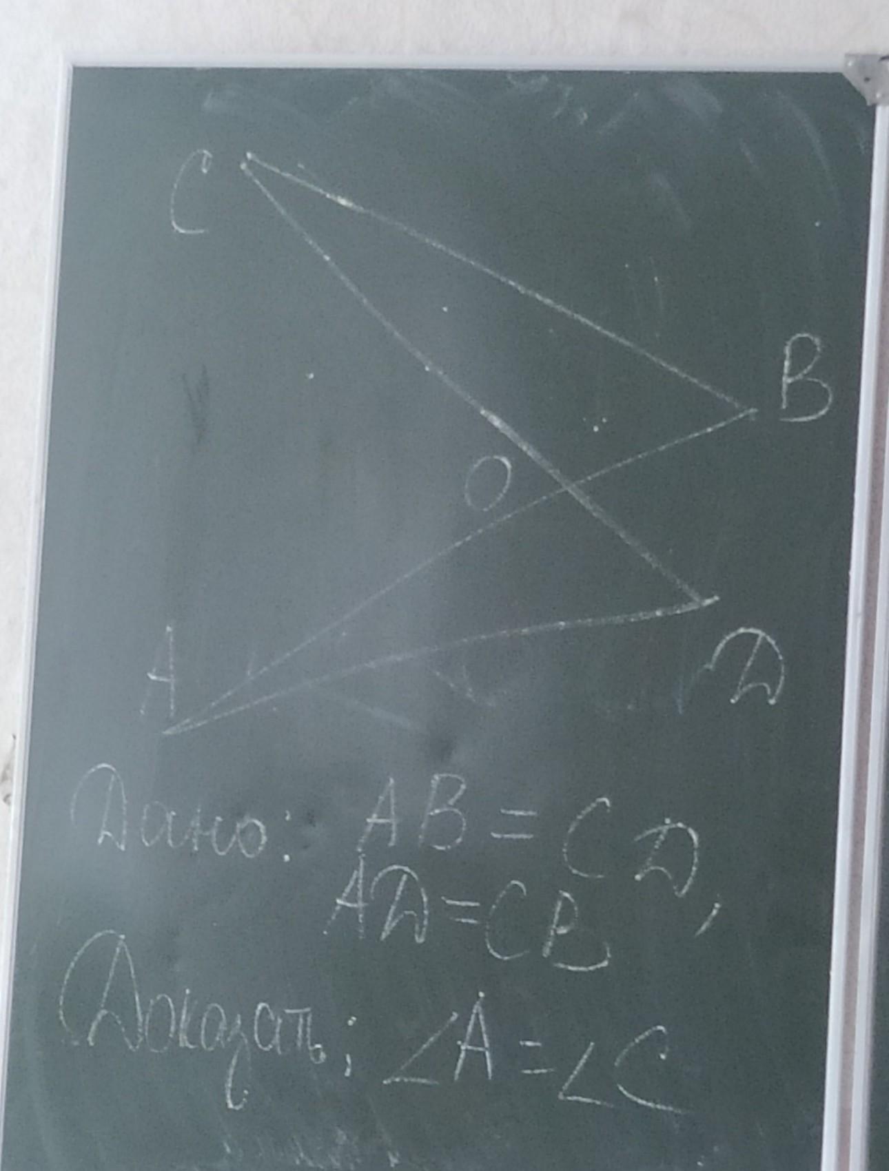 Треугольники подобные по 2 сторонам и углы между ними, т.к AB=CD AD=CB, углы COB и AOD вертикальные, значит равны.