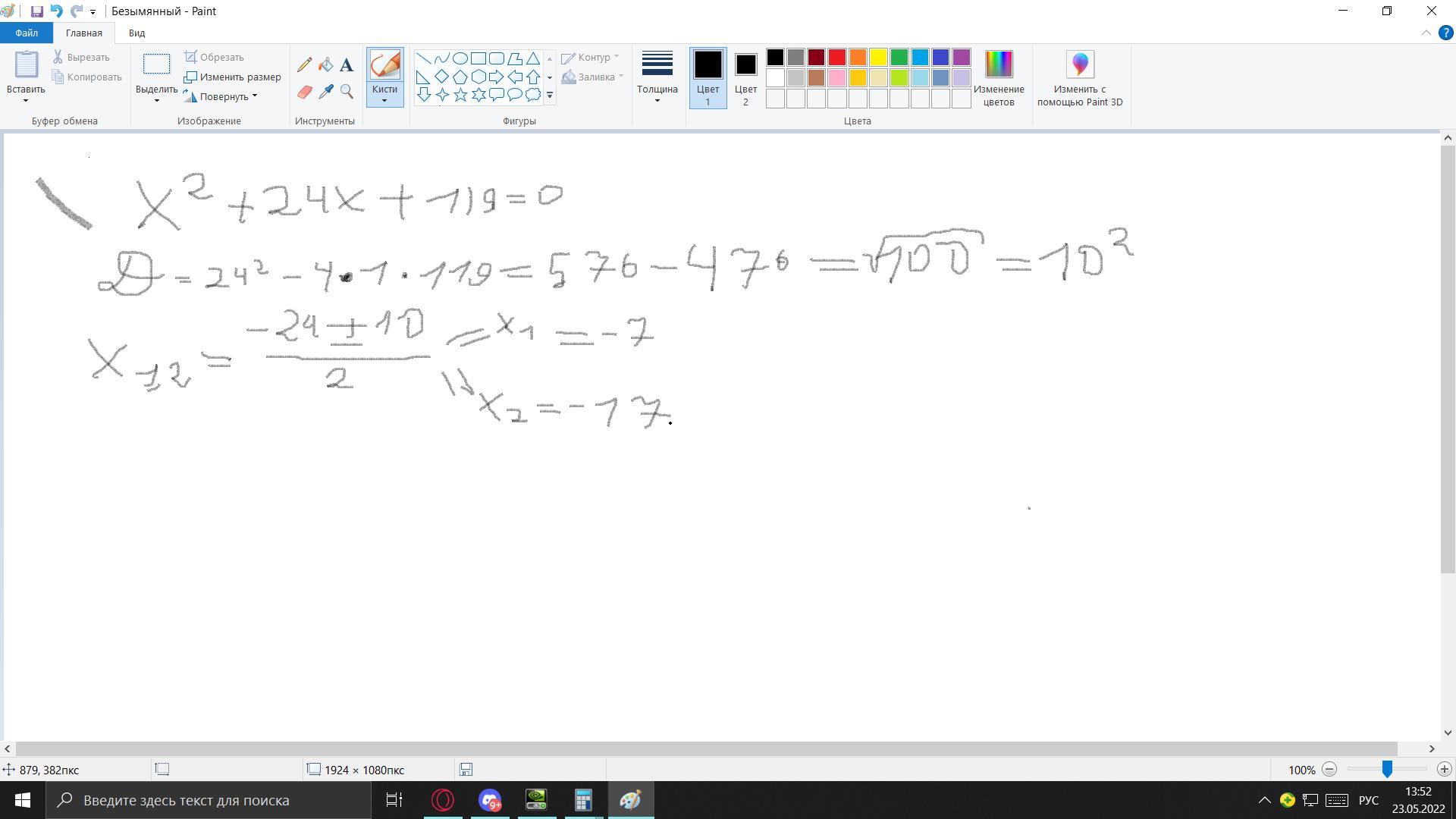 Не використовуючи формулу коренів, знайди корені квадратного рівняння x2+24x+119=0.
