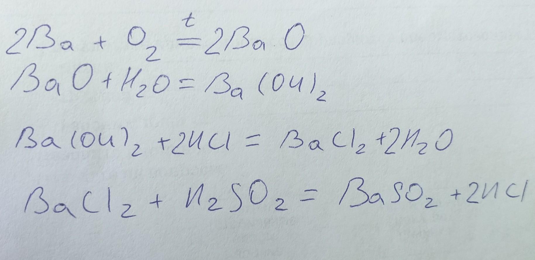 Ba→BaO→Ba(OH)2→BaCl2→BaSO2;