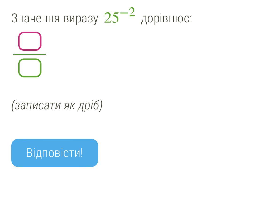 Ответ:1/625 альтернатива :0.0016, 5 -⁴