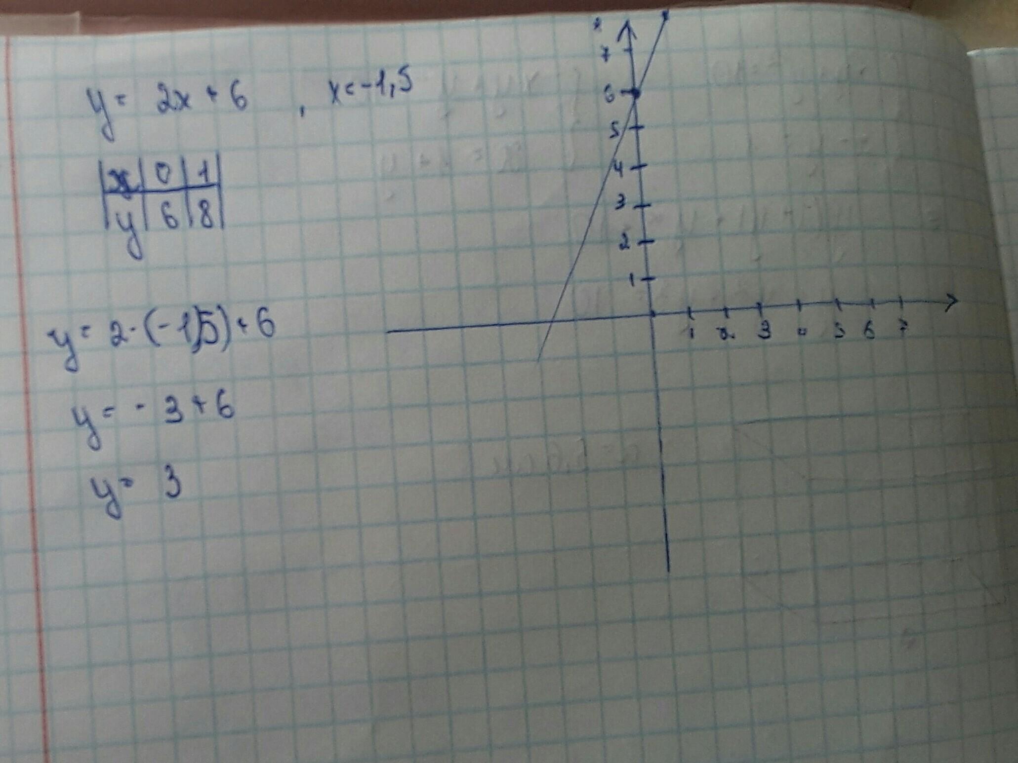 Постройте график функции y=2x+6. Найдите по графику значение y, соответствующие x=-1,5