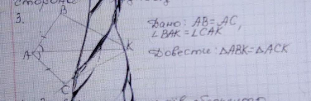 отсюда следует, что, треугольник АВК= треугольнику АСК по первому признак