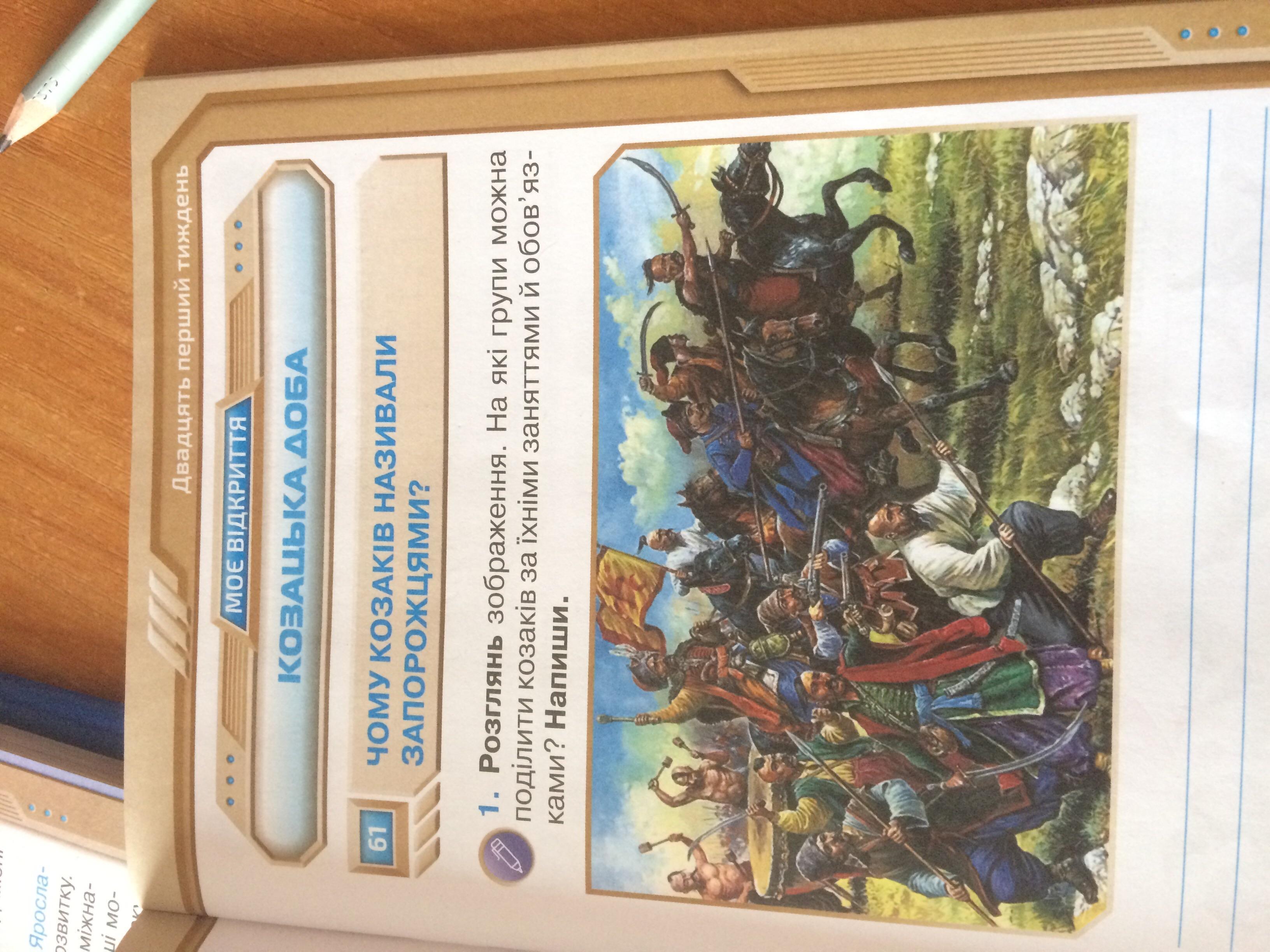 розглянь зображення. на які групи можна поділити козаків за їхніми заняттями й обов‘язками? напиши