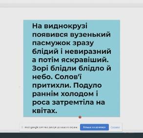 На виднокрузі появився вузенький пасмужок, зразу блідий і невиразний, а потім яскравіший. Зорі блідли, блідло й небо. Солов"ї притихли. Подуло раннім холодом, і роса затремтіла на квітах.