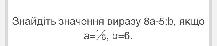 8a - 5 : b = 8 • 1/6 - 5 : 6 = 8/6 - 5/6 = 3/6 = 1/2