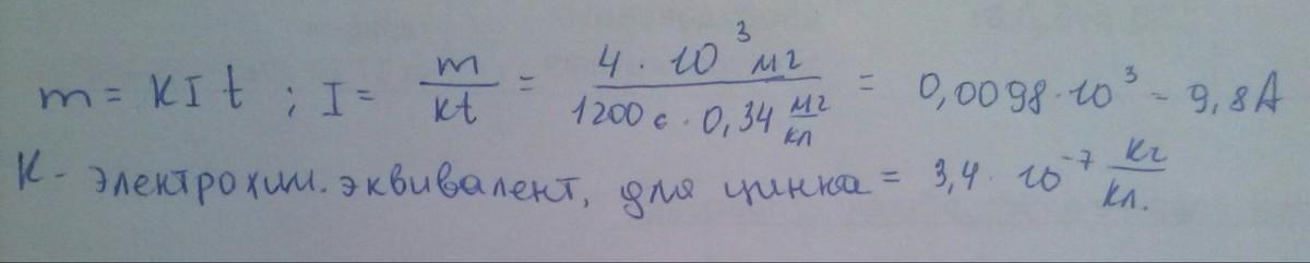 За 20хв електролизу водного розчину цинковои соли на катоди електролитичнои Ванни видилилось 4 г цинку .за Якои Сили струму проходив електролиз
