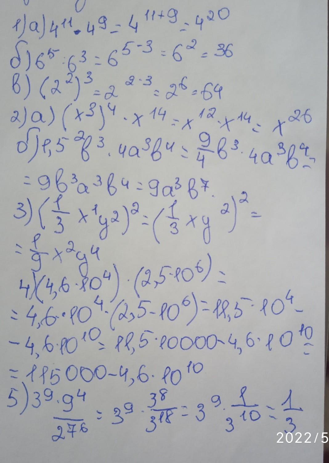 1.Вычислите: а) 4¹¹ * 4-⁹ б) 6-⁵ : 6-³ в)(2-²)³