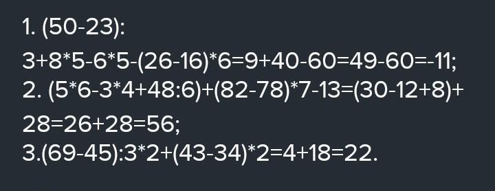(5*6-3*4+48:6)+(82-78)*7-13=