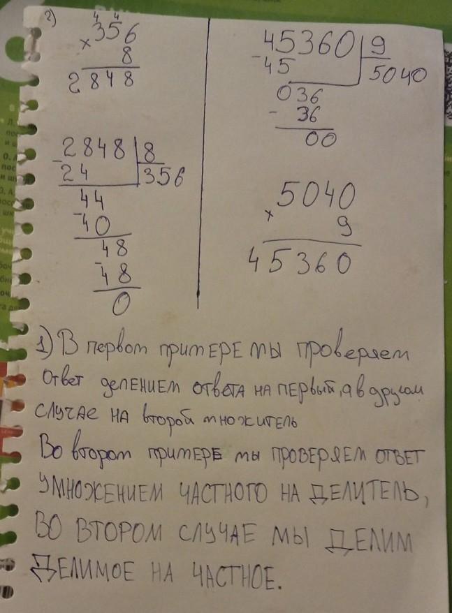 Я пыталась, сначала идёт вторая часть, решение примеров и проверка, потом первая.