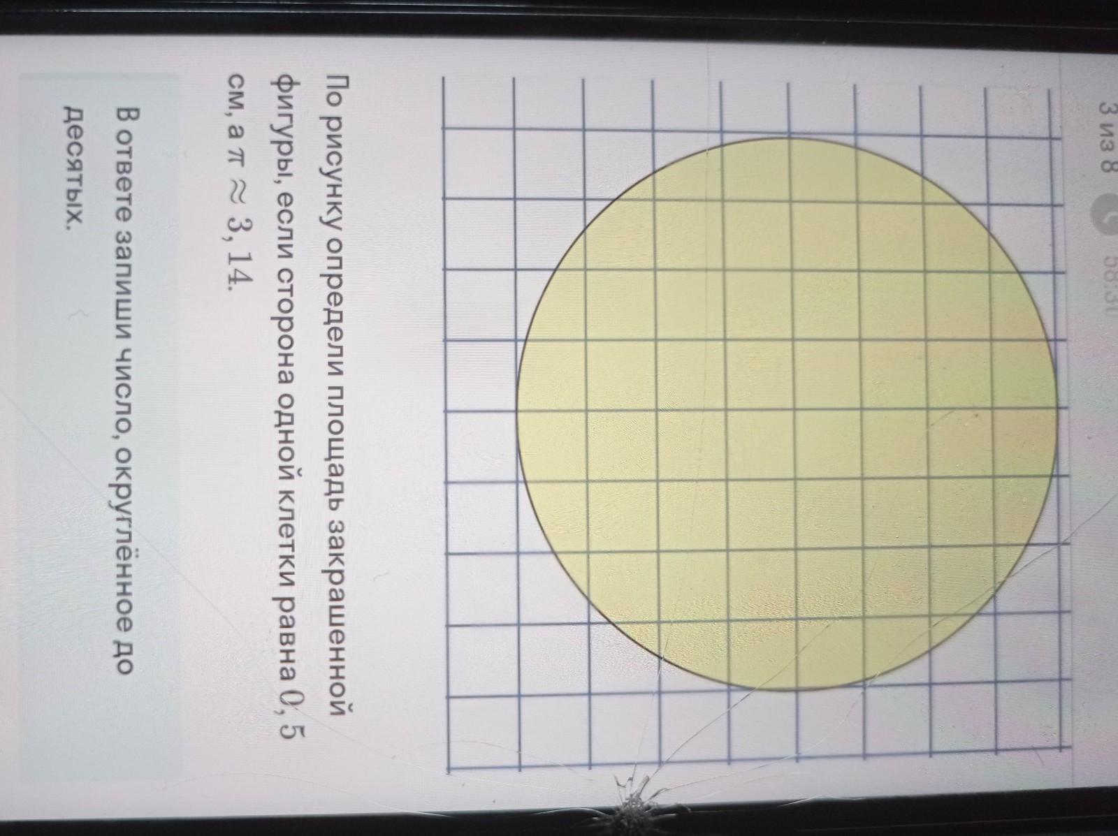 По рисунку определи площадь закрашенной фигуры,если сторона одной клетки равна 0,5 см а п ≈ 3,14