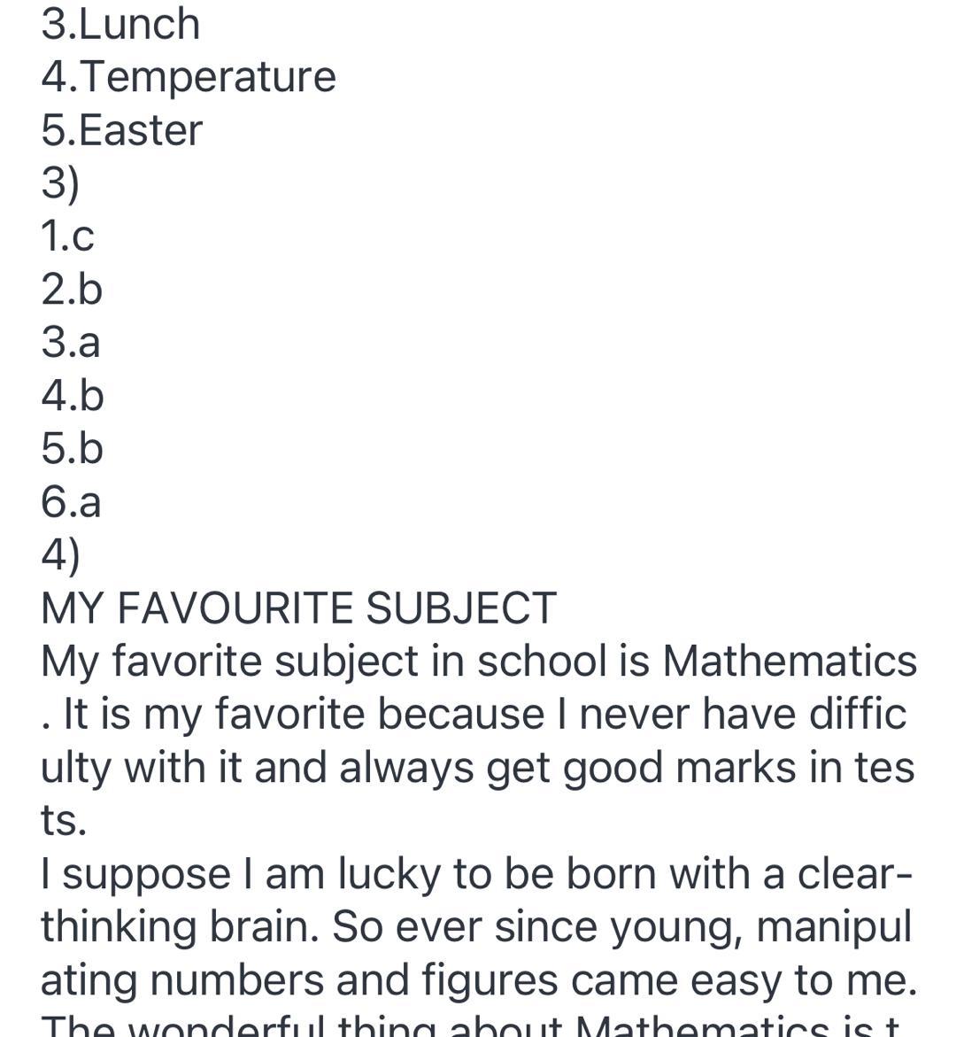 My favorite subject in school is Mathematics. It is my favorite because I never have difficulty with it and always get good marks in tests.