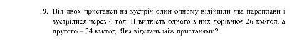 9. Вiд двох пристаней на зустрiч один одному вiдiйшли два пароплави i зустрілися через 6 год. Швидкість одного з них дорівнює 26 км/год, а другого - 34 км/год. Яка відстань мiж пристанями?