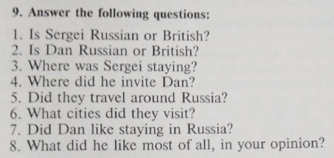 6. Sergey and Dan visited Moscow, St. Petersburg, Yaroslavl, Sochi, Grozny and Mytishchi.