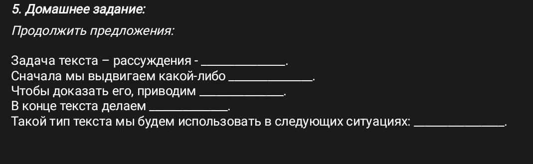 Задача текста – рассуждения - развить, доказать или опровергнуть какую-либо мысль