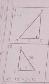 Пожалуйста, нужно решить эти две фигурки, по теореме пифагора, прошу распишите полностью (дано,решение,док-во) не совсем понимаю в геометрии... Быть точнее вообще не понимаю. Буду очень благодарна!
