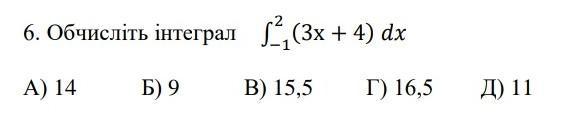 S(3x+4)dx=3/2 x²+4x |_(-1)^(2)=3/2×2²+4×2-(3/2×(-1)+4×(-1))=6+8+3/2+4=18-1½=16,5