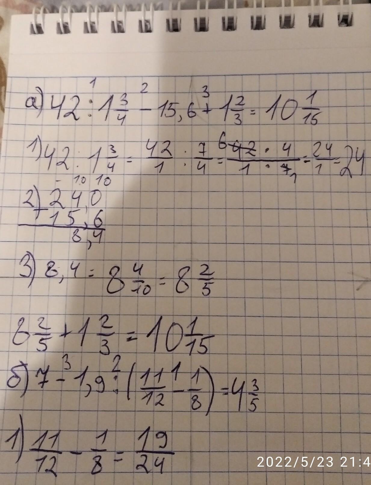 а) 42:1.75-15.6+5/3=10¹/₁₅