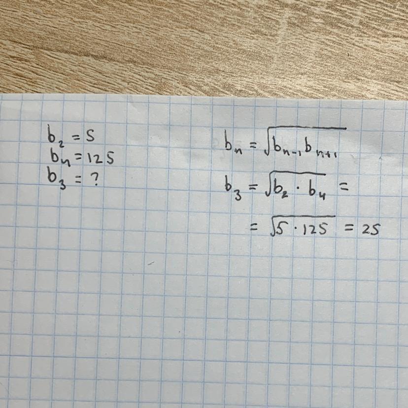 Знайдіть третій член геометричної прогресії (bn), якщо відомо, що він від'ємний та b2=5; b4= 125.
