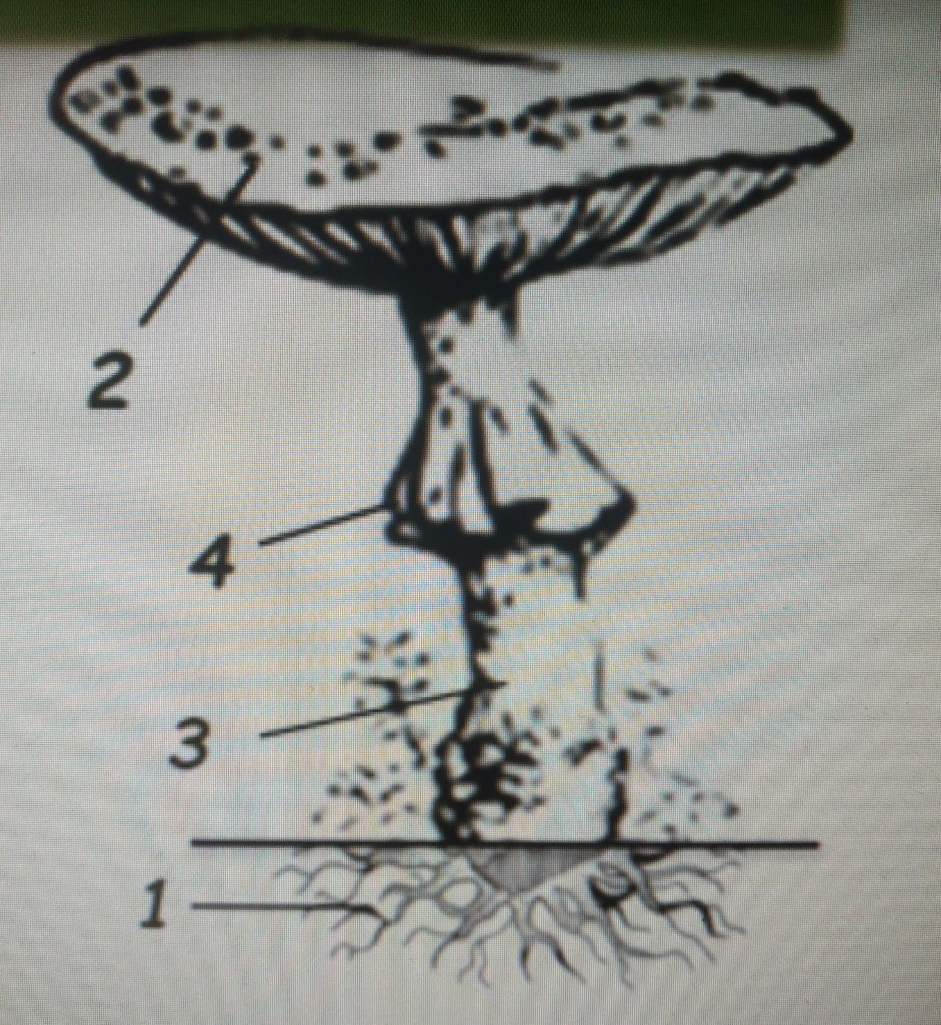 1 - грибниця 2 - шапинка 3 - ніжка 4 - покривало