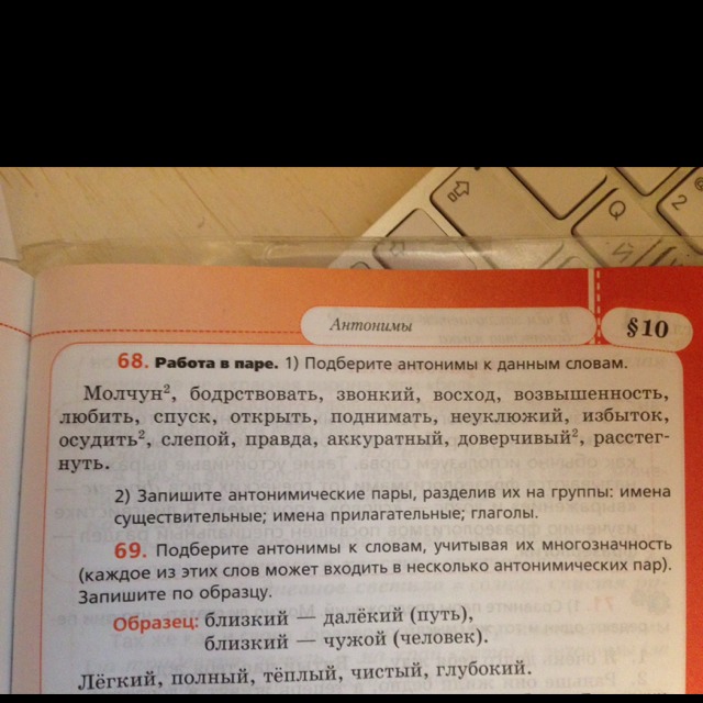 Глаголы:бодрствовать-спать,любить-ненавидеть,открыть-закрыть,поднимать-опускать,осудить-оправдать,расстегнуть-застегнуть.