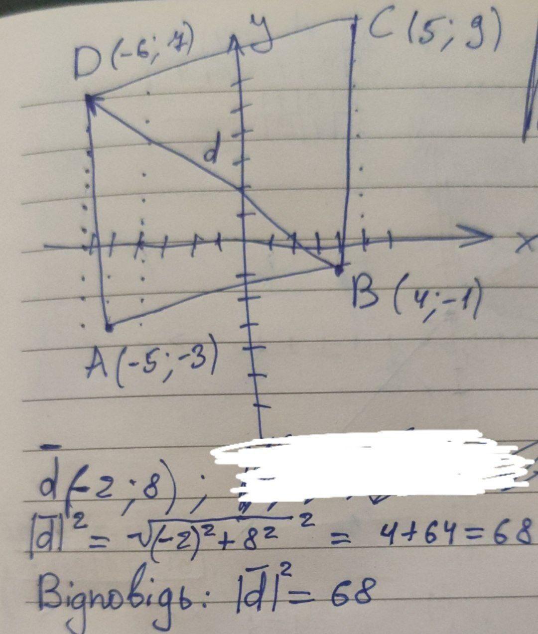 1. в паролелограмме ABCD заданы координаты вершин: А (-5,-3) В (4, -1) С (5,9). найдите квадрат диагонали BD
