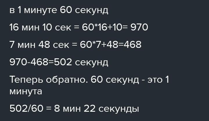 7 мин 48 сек = 60*7+48=468