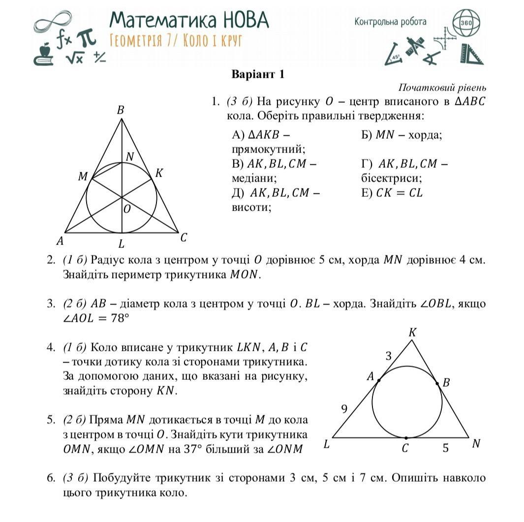 Розглянемо ΔOMN, ∠MON=90° - оскільки дотична до кола радіус проведений у точку дотику M, утворює з дотичною прямий кут.