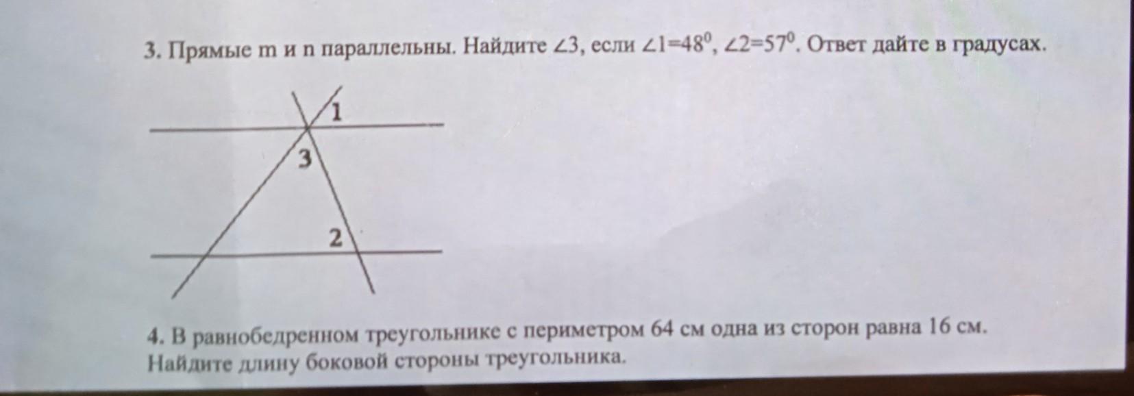 <1 +<4=48+57=105, <3=180-105=75 (cмежные)