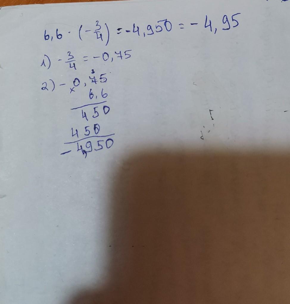 Так как -3/4 это -0,75. Умножаем. Три знака после запятой