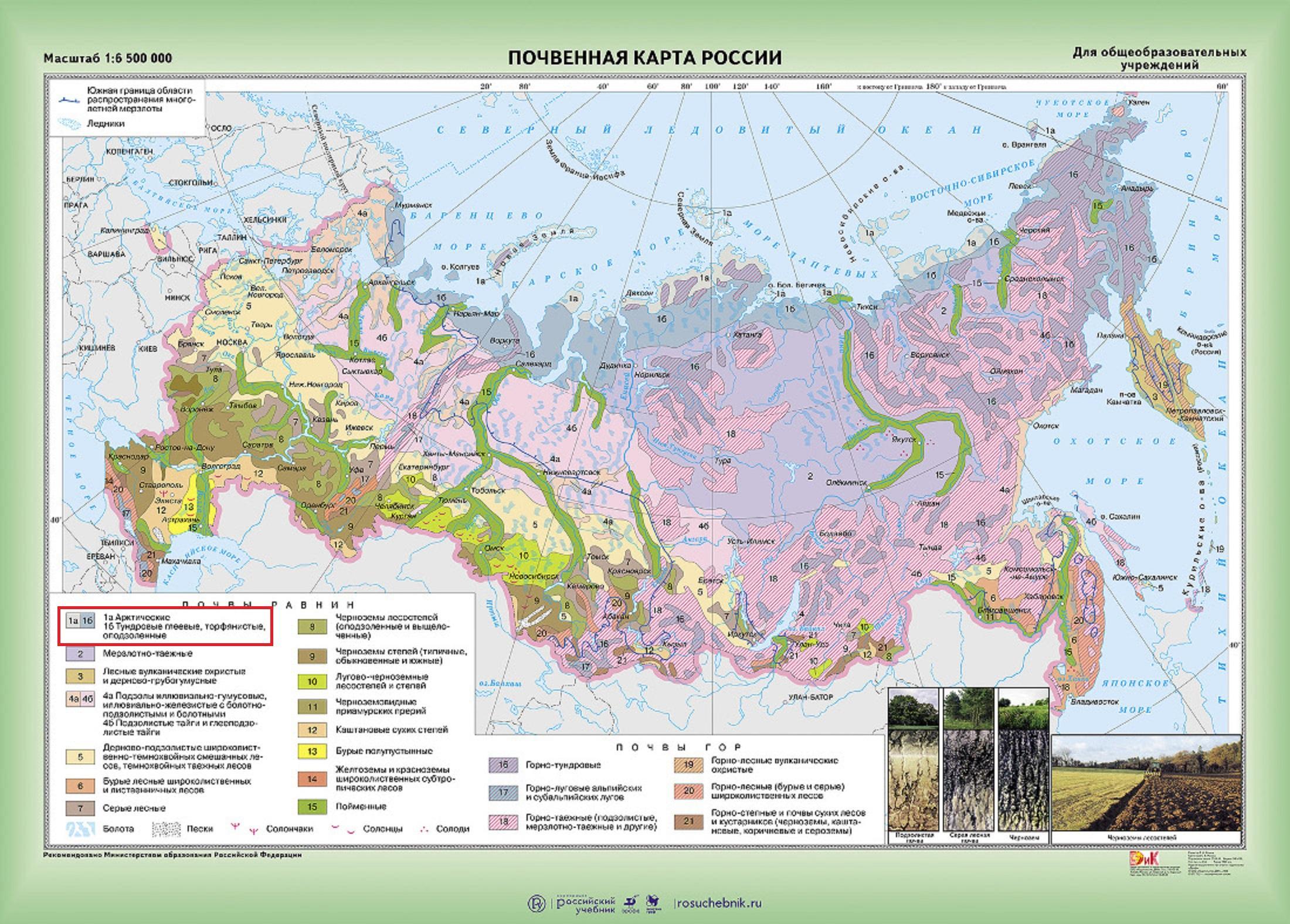 Тундрово-глеевые почвы, как видно из карты почв, которая дана ниже в приложении, расположены в северных регионах.
