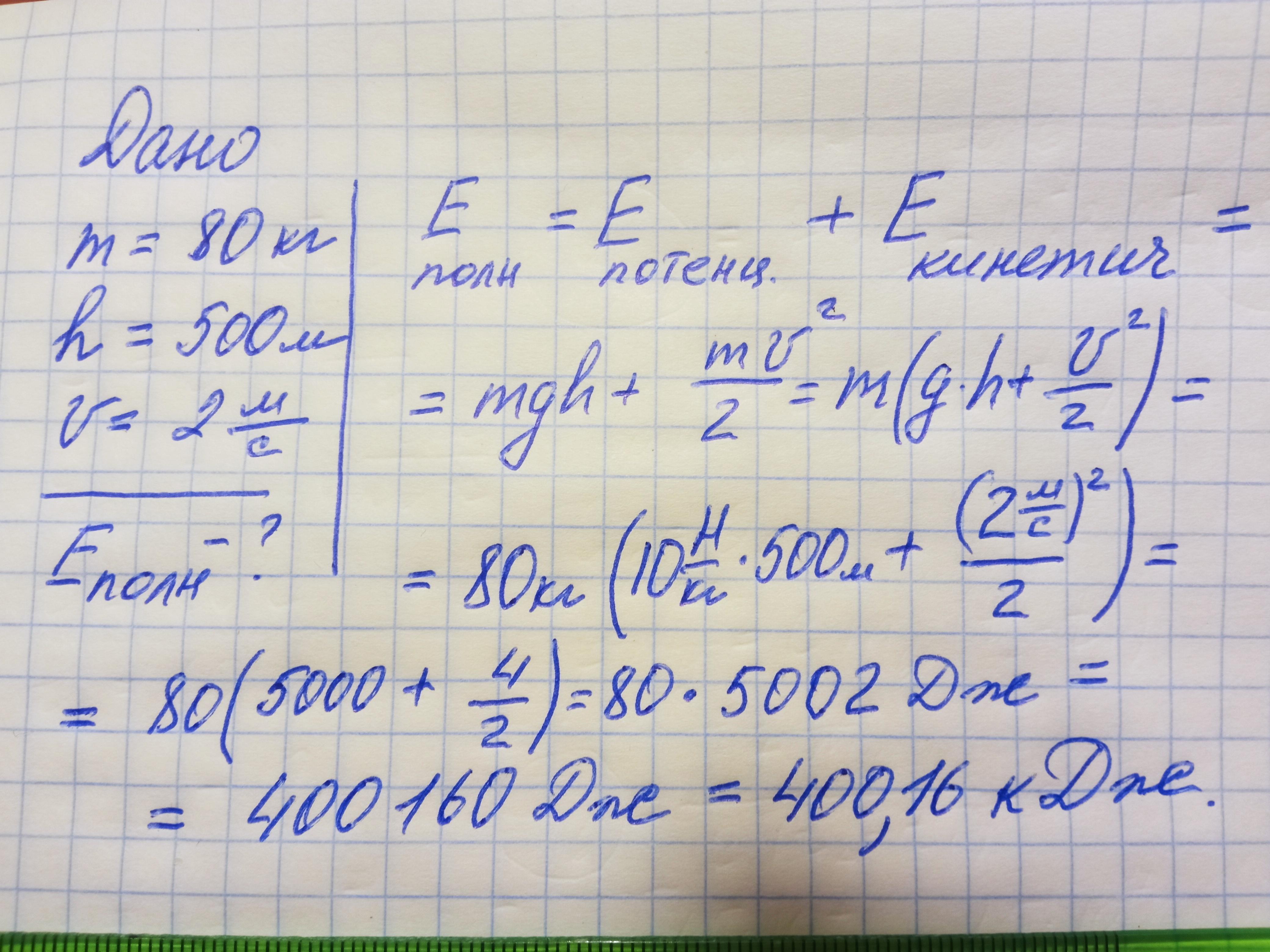 Срочно!!!Завдання 5. Визначте повну механiчну енергиюю парашутиста, маса якого 80 кг, у момент, коли він