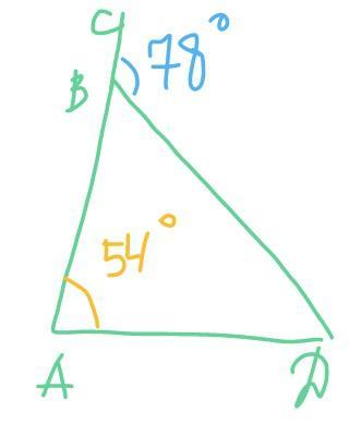 один из внутреннтх углов треугольника равен 54° а внешний угол не смежный с ним-78°.найдите углы треугольника