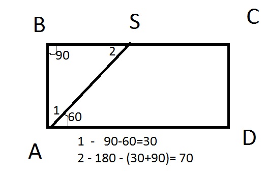 прямоугольника, составляющая угол 60 со сторонами AD и AB.Найдите угол