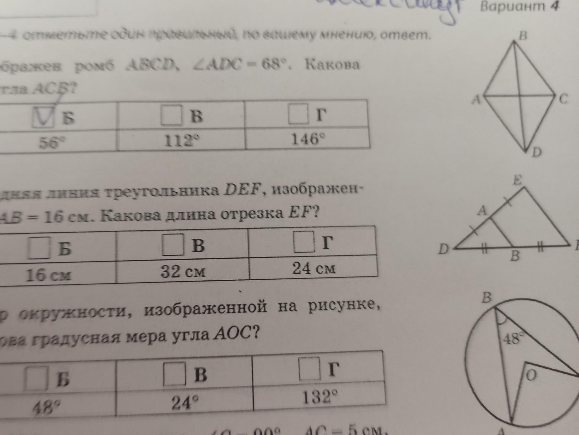 отрезок AB - средняя линия треугольника DEF, изображенного на рисунке, AB = 16 см. Какова длина отрезка EF