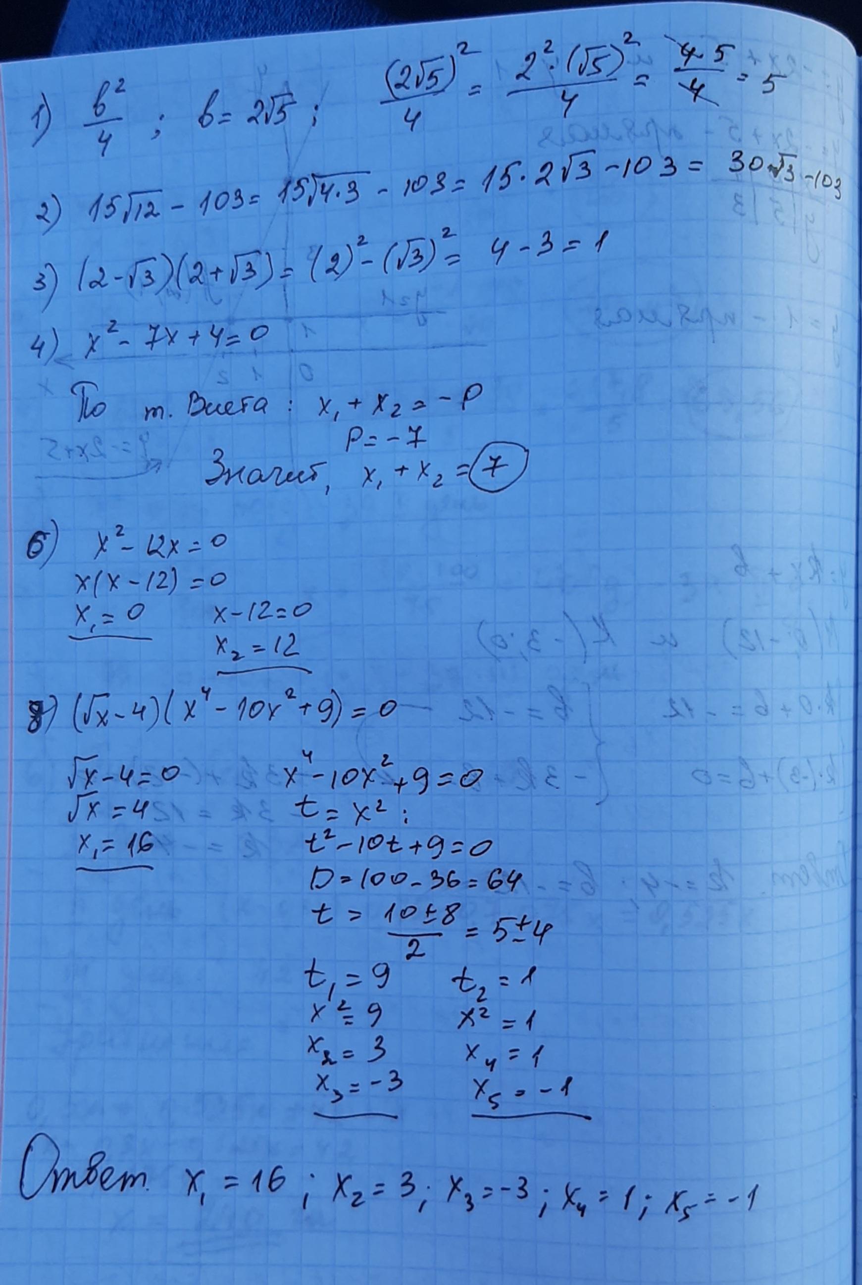 1.Обчисліть значення виразу b^2 дріб 4 при b = 2√5