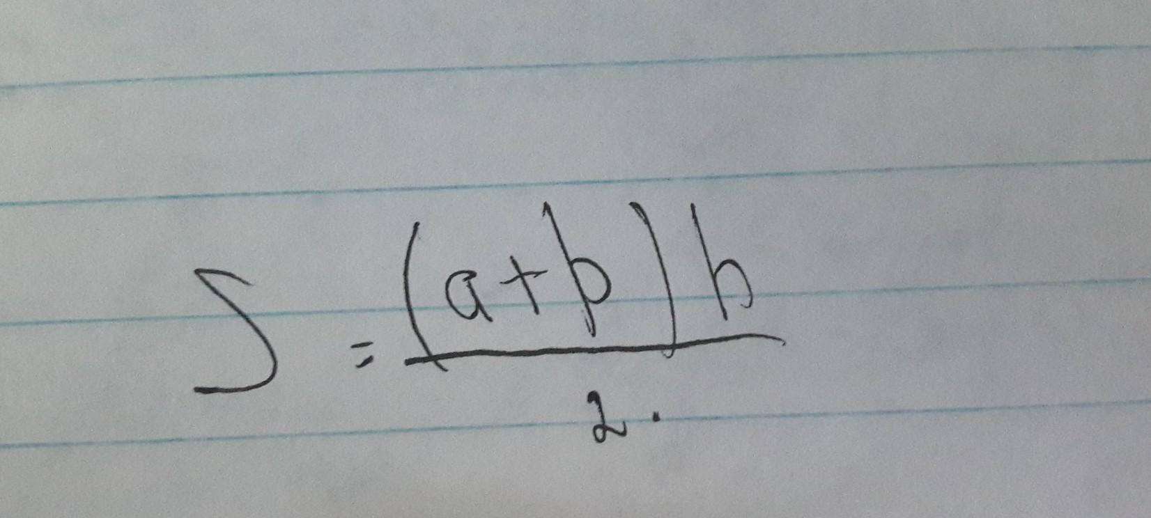 s= (a+b)h (чуть ниже черточка типо как дробь и 2 ) надеюсь норм обяснил..