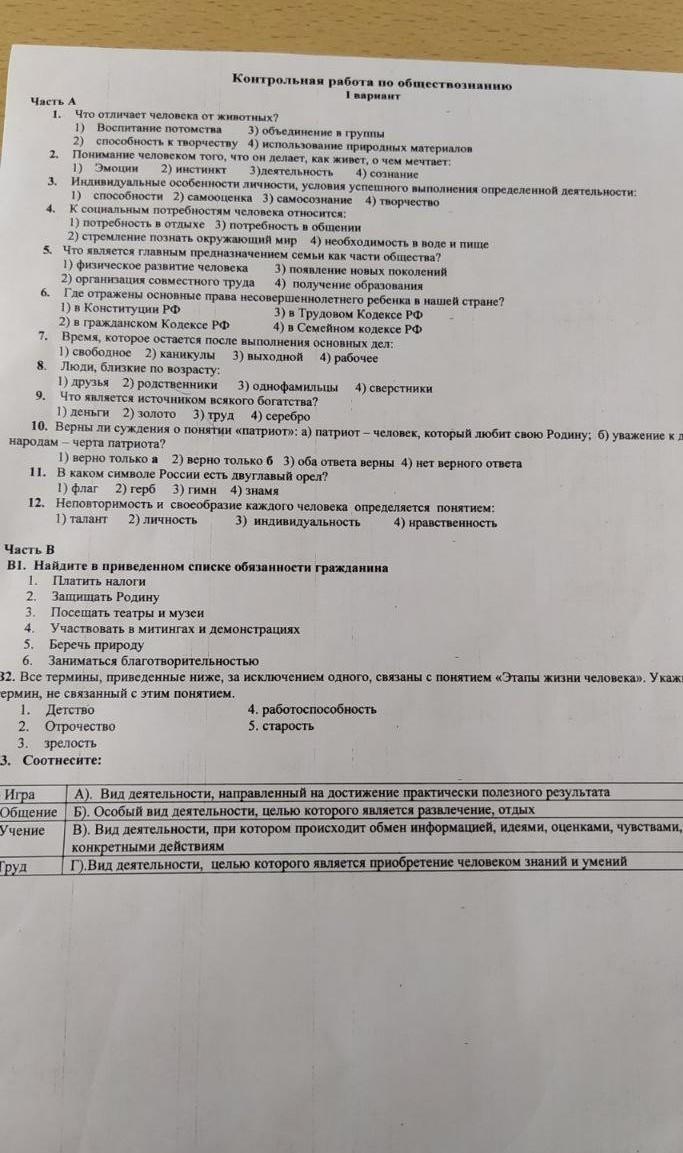 ПОМОГИТЕ ПОЖАЛУЙСТА, ИТОГОВАЯ БУДЕТ ЧЕРЕЗ 20 МИНУТ, ВОТ ВАМ ФОТО. 6 класс обществознание