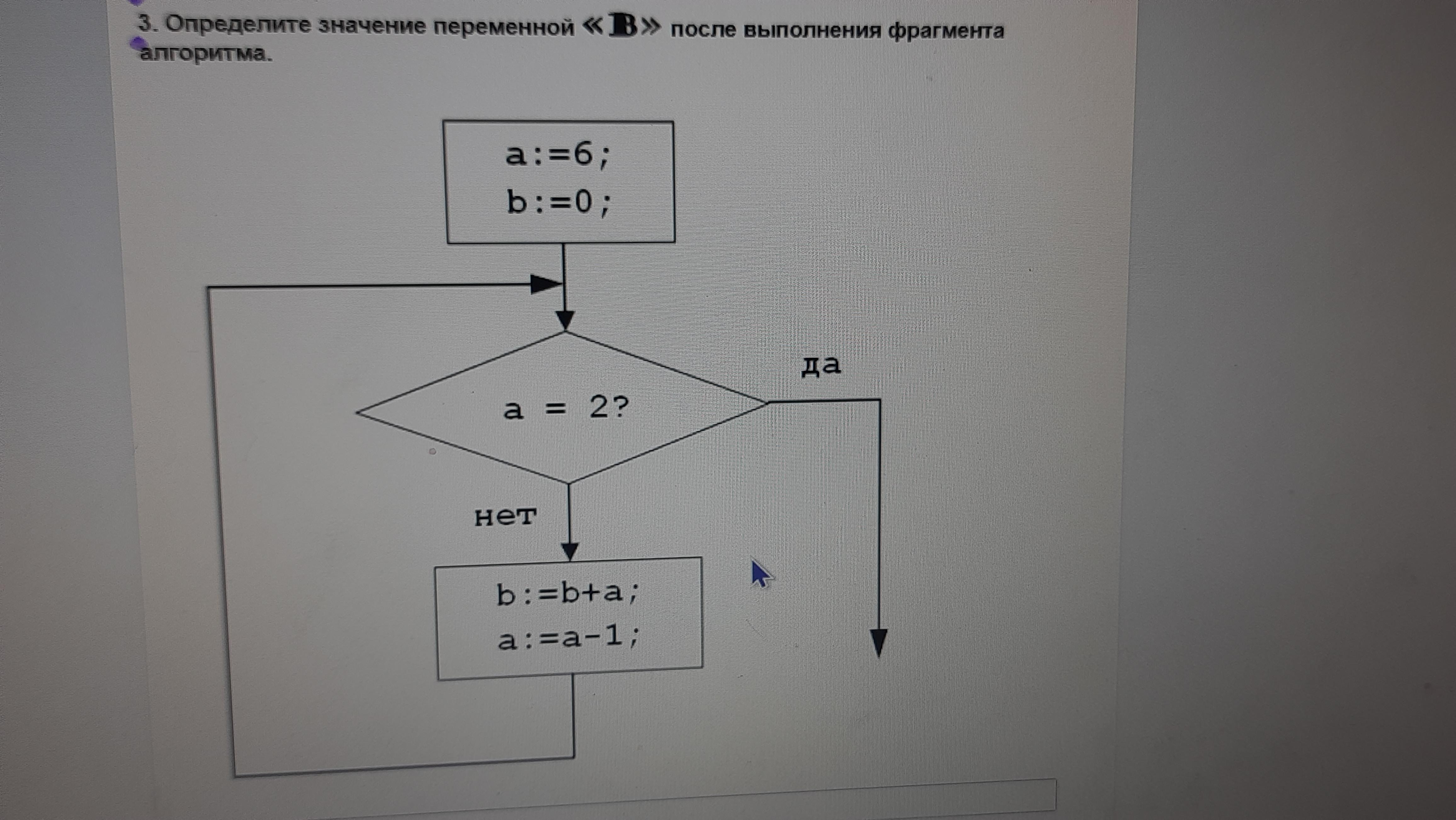Определите значение переменной Б после выполнения фрагмента алгоритма