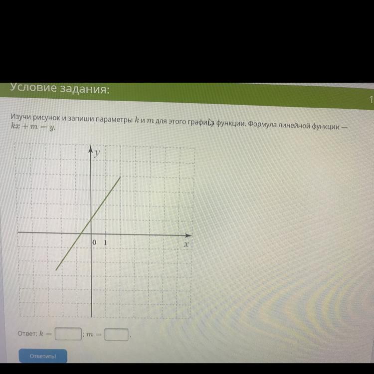 Изучи рисунок и запиши параметры k и m для этого графика функции. Формула линейной функции -