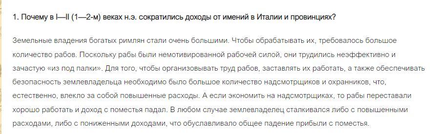 1. Почему в I—II (1—2-м) веках н. э. сократились доходы от имений в Италии и провинциях?