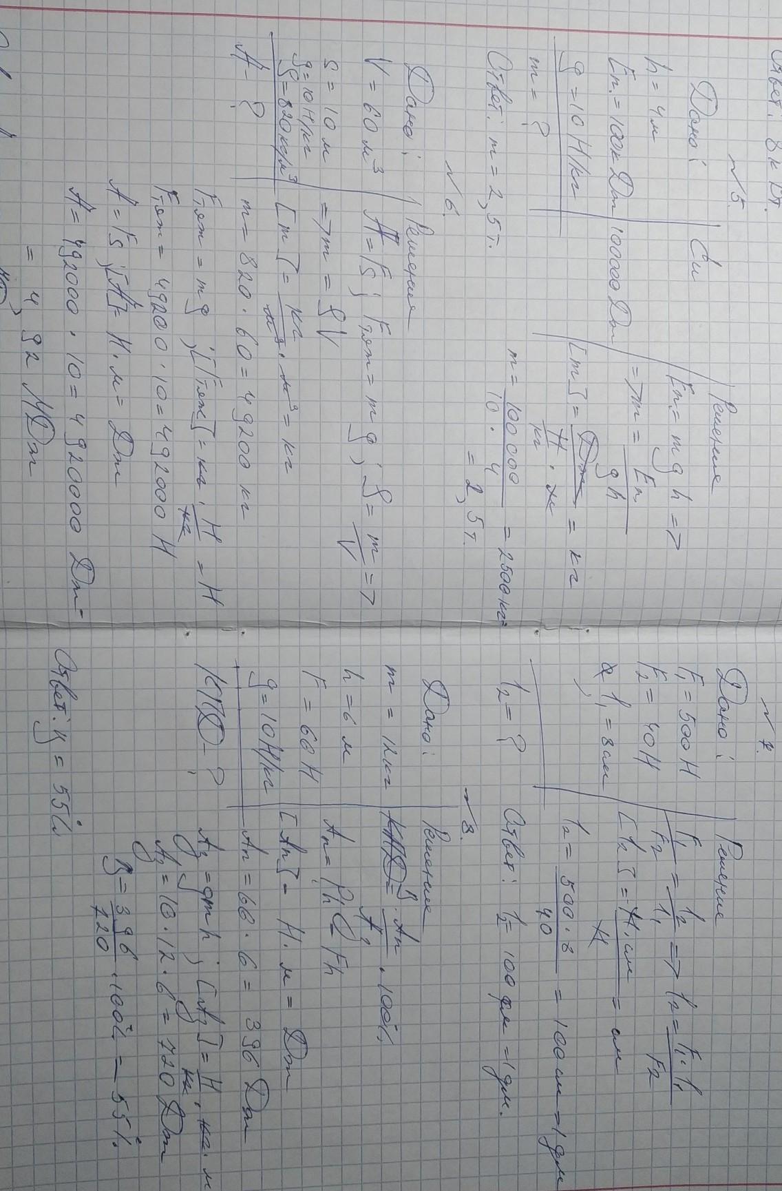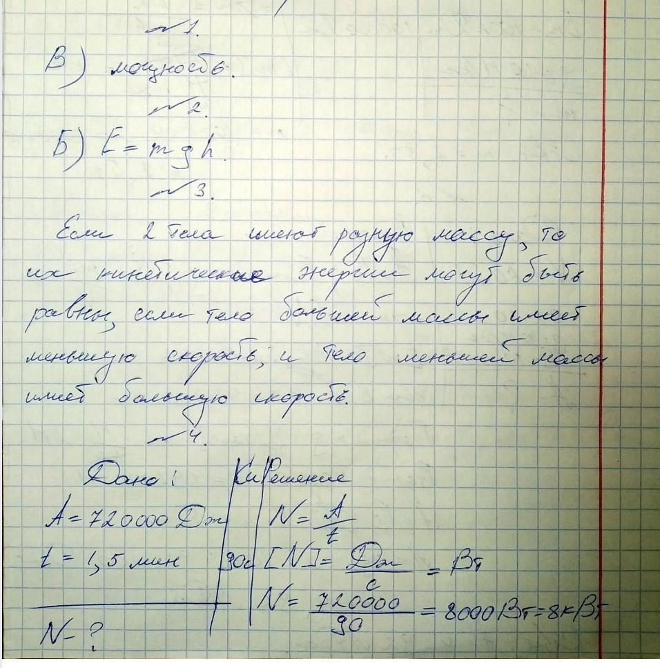 1.в ваттах измеряют?2.из приведенных ниже формул выберите формулу потенциальной энергии тела поднятого над землей.3.при помощи токарного станка была совершена работа 720000дж за 1,5мин.какая мощьность двигателя станка?4.подьемным краном подняли кирпичи на высоту 4м.при этом потенциальная энергия кирпичей увеличилась на 100кдж.определите массу кирпичей.5.насос перекачивает нефть обьемом 60м3 на расстояние 10м.определите работу насоса.6.при равновесии рычага на его меньшее плечо действует сила 500н а на большее плечо 40н.длина меньшего плеча 8см.какова длина большего плеча?7.чему равен КПД системы подвижного и неподвижного блоков с помощью которой поднят груз массой 12кг на высоту 6м силой 66н? помогите пожалуйста решить с дано и пояснениями.