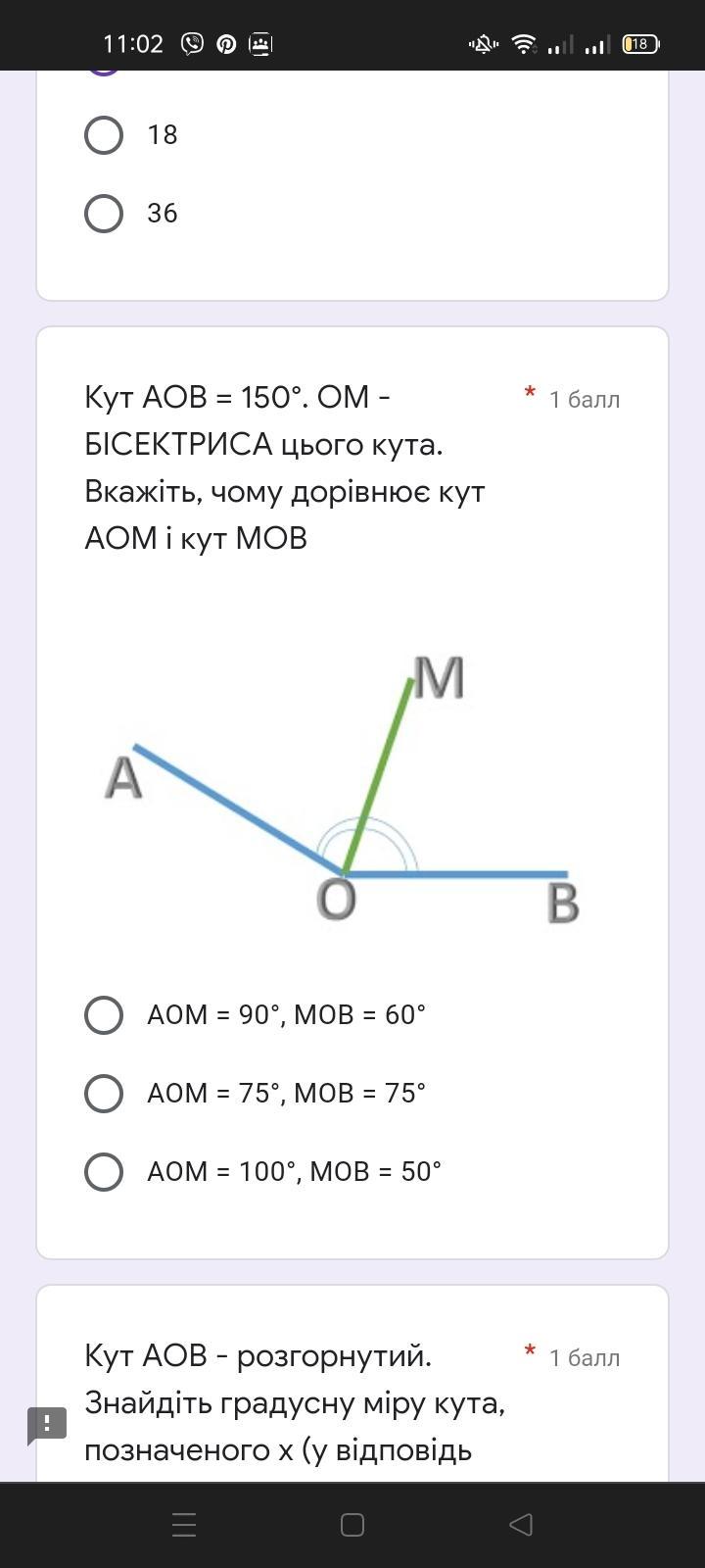 Ответ : <АОМ=75 градусов ; <МОВ=75 градусов