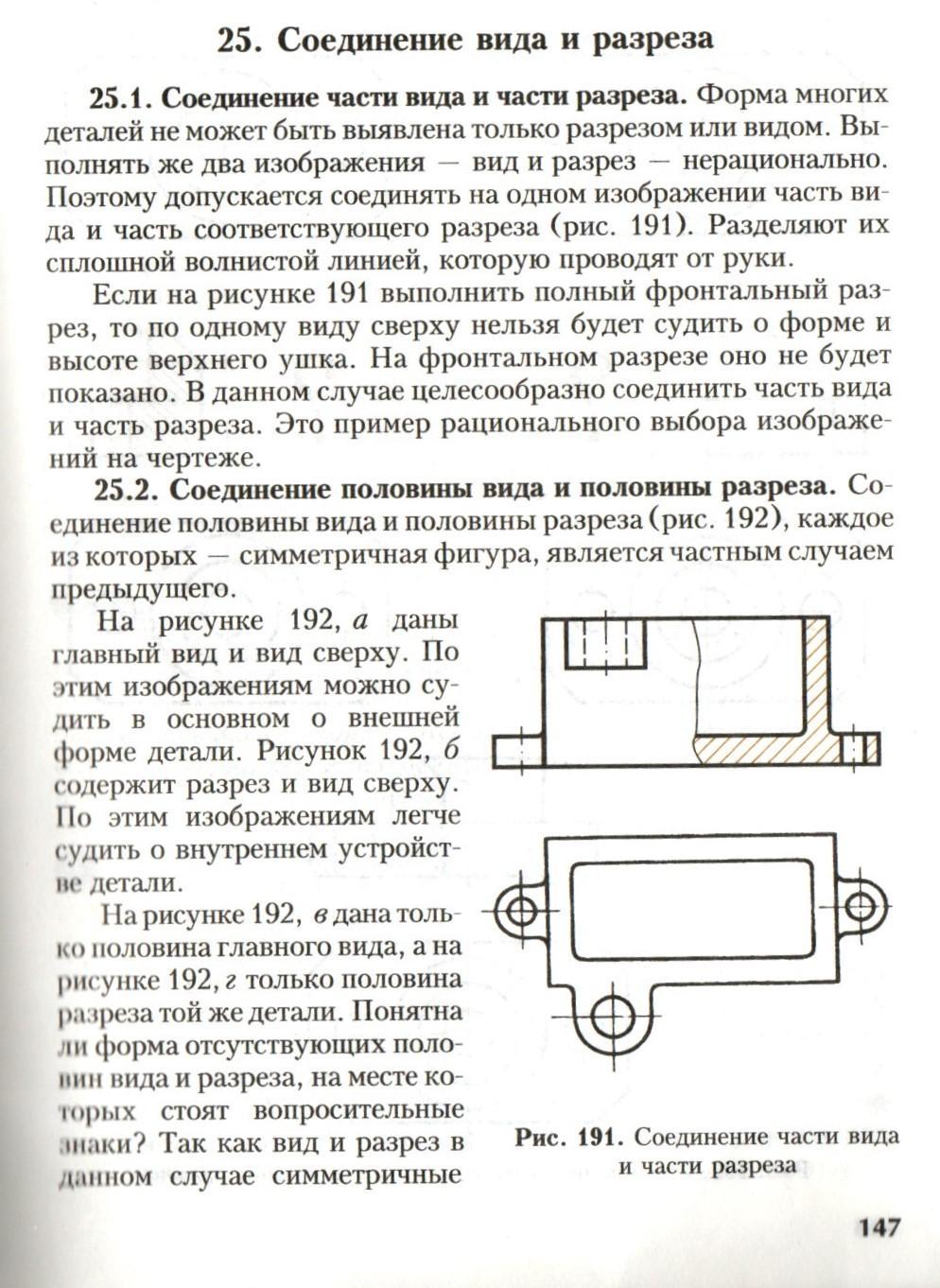 Прочесть и описать разницу между (соединением вида и части разреза) и (соединение половины вида и половины разреза)